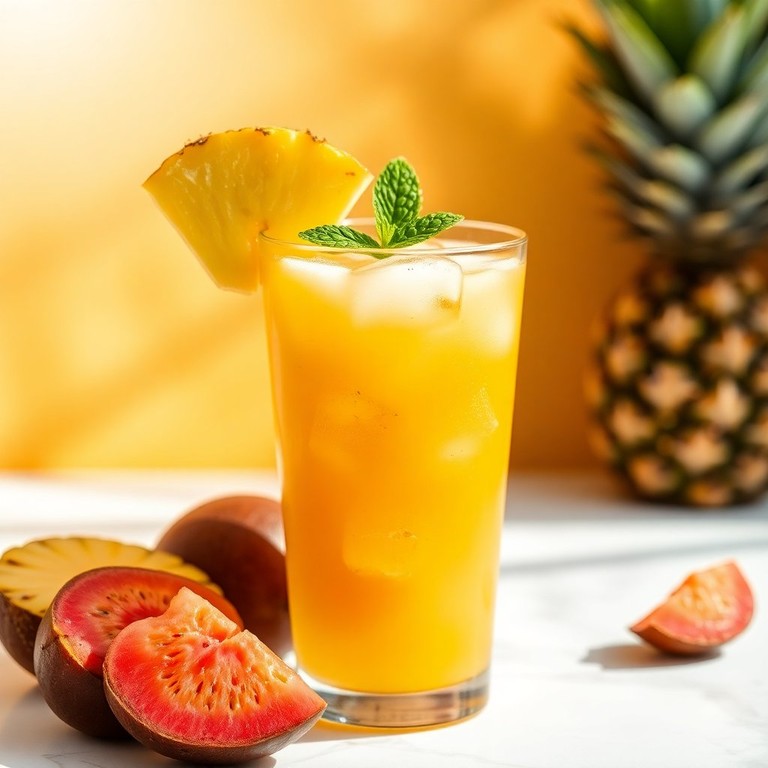 La combinación perfecta de dulzura y frescura para disfrutar en un día caluroso. Este jugo tropical de guayaba y piña es ideal para refrescarte y deleitarte con su sabor exótico.