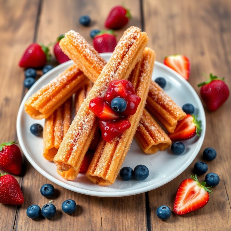 Churros de Frutas son una deliciosa variación de los tradicionales churros, rellenos con una compota de frutas frescas que les da un toque más ligero y refrescante. Perfectos para disfrutar como postre o merienda.