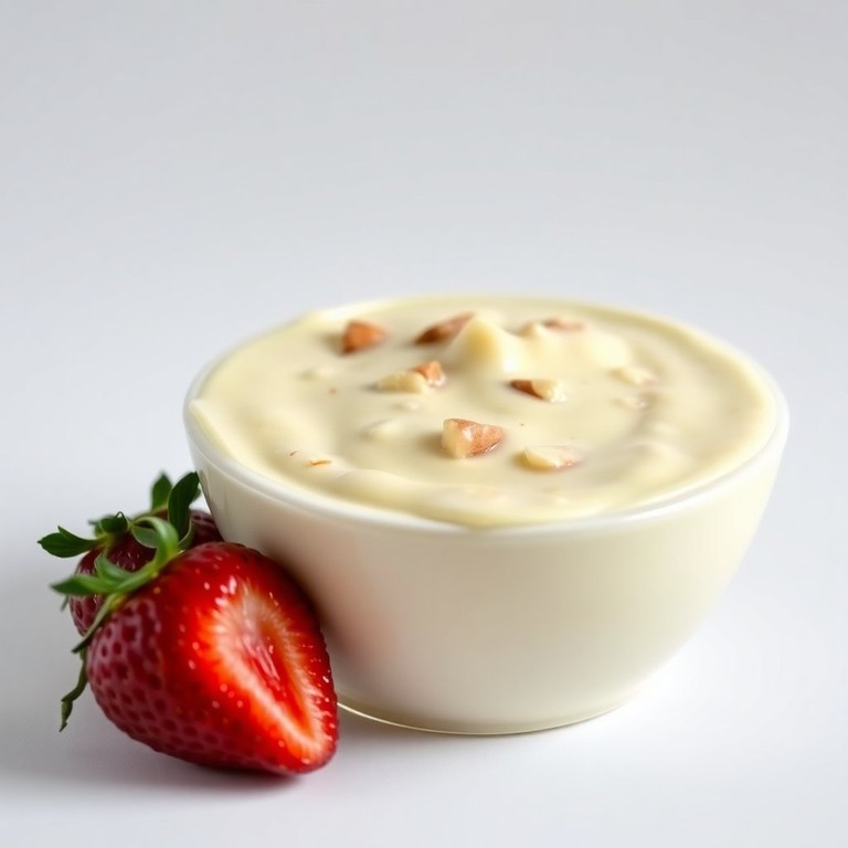 Una suave y cremosa salsa de chocolate blanco con trocitos de almendra, perfecta para acompañar fresas. Esta salsa es ideal para una merienda dulce o como postre en una ocasión especial.