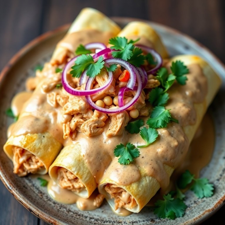 Enchiladas de Pollo Rostizado con Salsa de Cacahuate