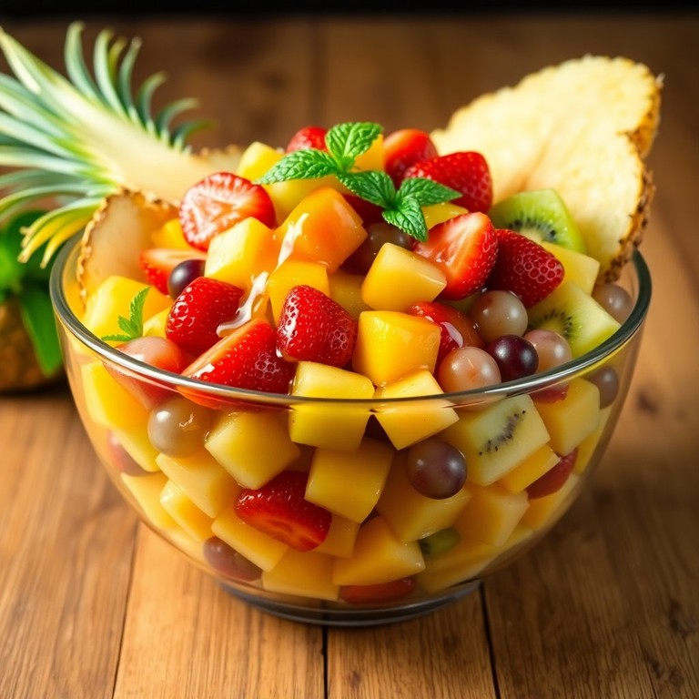 Esta ensalada tropical de frutas es una deliciosa combinación de sabores frescos y exóticos, perfecta para cualquier ocasión. La mezcla de piña, mango y kiwi, junto con un toque de miel y nueces, crea una explosión de sabores que refrescará tu paladar.