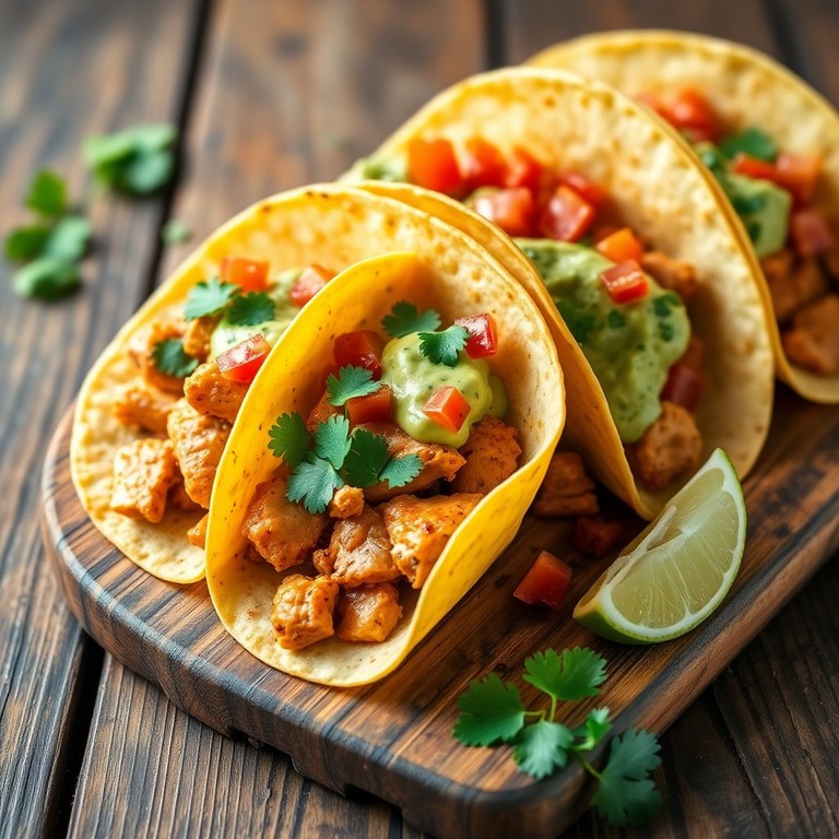 Tacos llenos de sabor, con pollo sazonado y un cremoso guacamole, ideales para disfrutar sin lactosa.