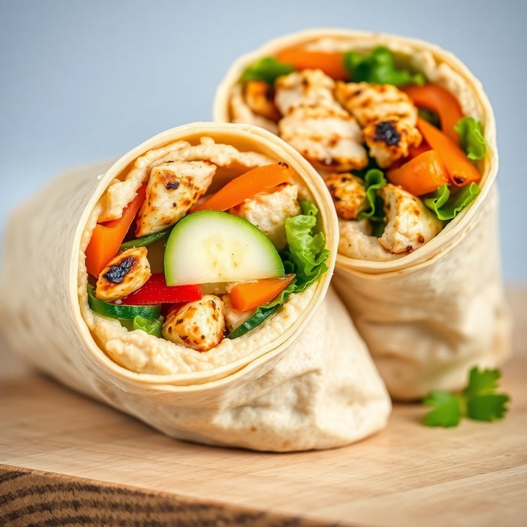Un wrap refrescante que mezcla pollo a la parrilla, hummus cremoso y verduras crujientes, todo con un toque cítrico. Perfecto para un almuerzo ligero o una cena rápida.