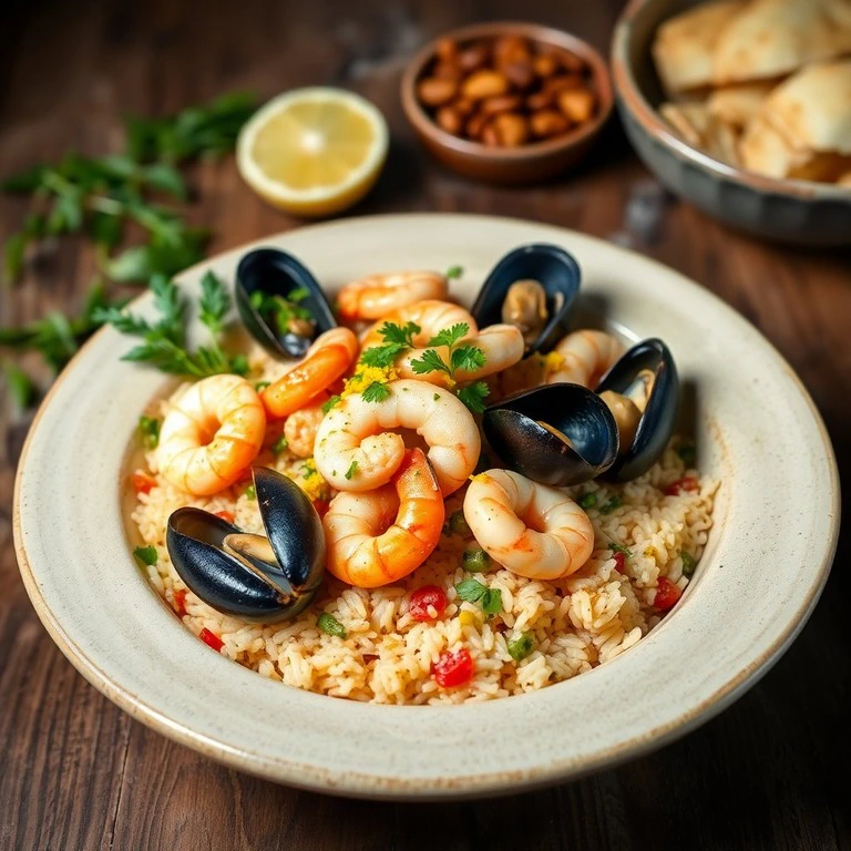 Una deliciosa mezcla de mariscos frescos con hierbas aromáticas y un toque de limón, ideal para disfrutar en una comida especial.