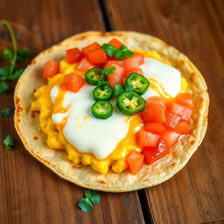 Tortilla de Huevo y Queso Fundido con Jitomate Fresco