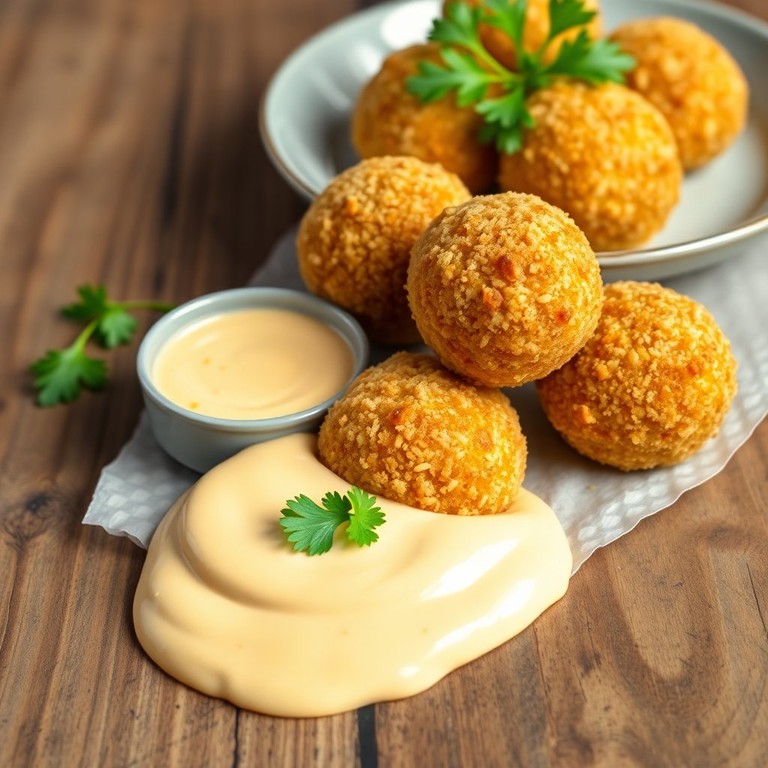 Estas crujientes bolas de huevo son una deliciosa combinación de sabores y texturas, perfectas como aperitivo o plato principal. La suave mayonesa de zanahoria complementa perfectamente la crocancia de las bolas, creando una experiencia culinaria única.