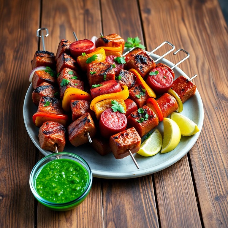 Brochetas de Butifarra y Chorizo con Salsa de Chimichurri