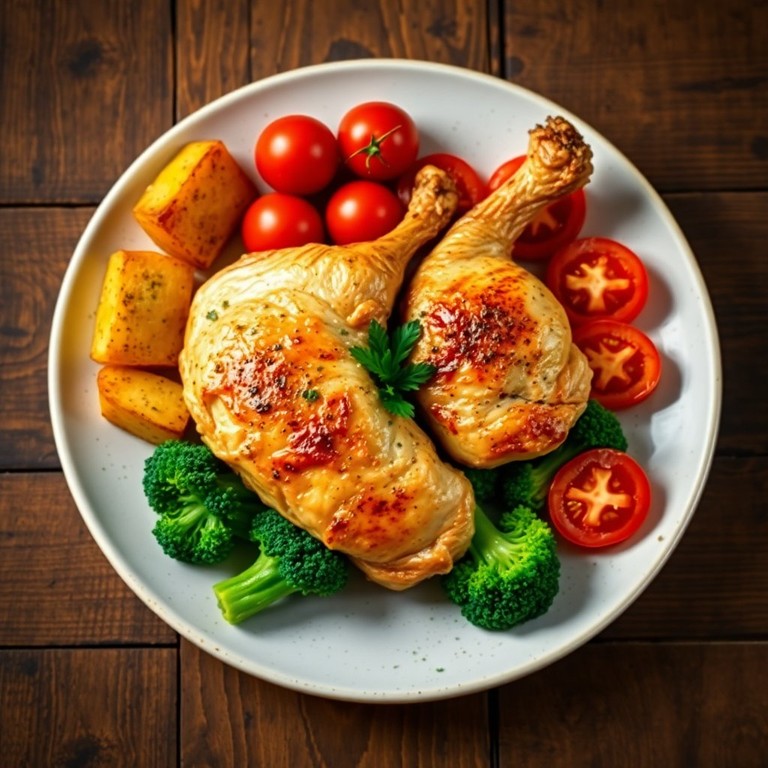 Una deliciosa combinación de pollo tierno, papas doradas y brócoli al vapor, todo cocido al horno sin aceites ni especias.