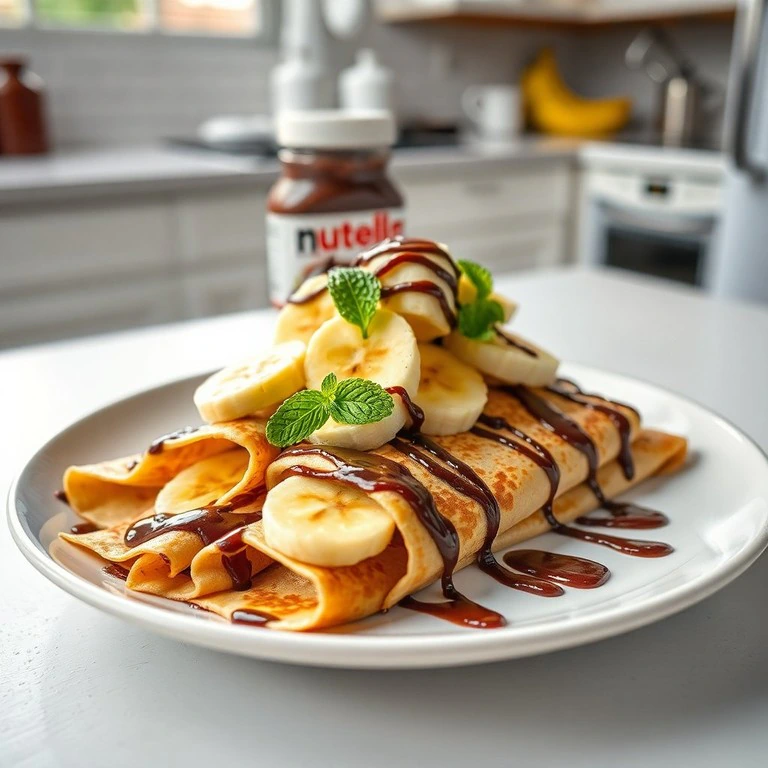 Deliciosas crepas rellenas de Nutella y rodajas de plátano, perfectas para un postre irresistible.