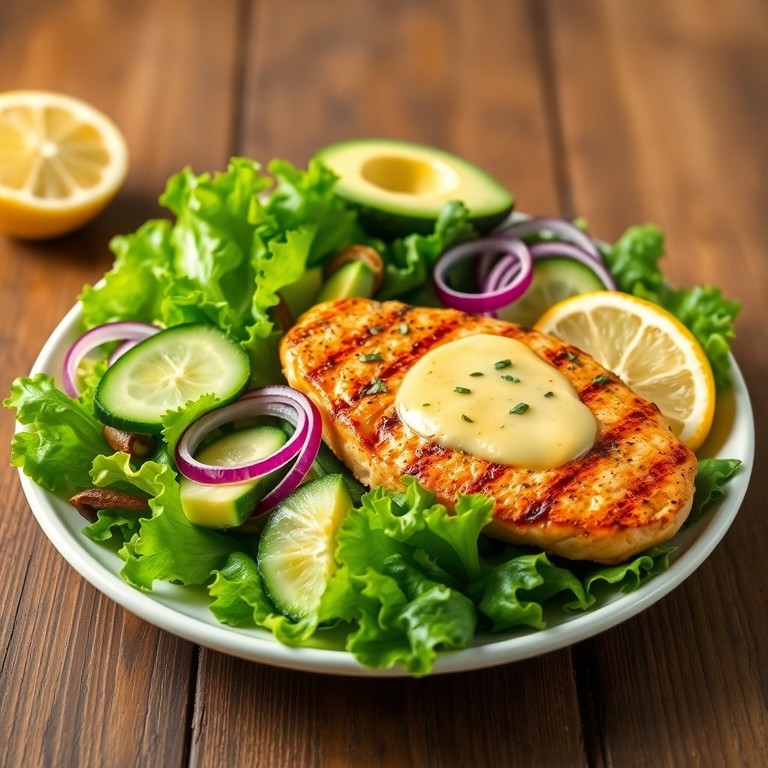 Pechuga de Pollo a la Parrilla con Salsa de Limón y Ensalada Refrescante sin Pimentón Ahumado