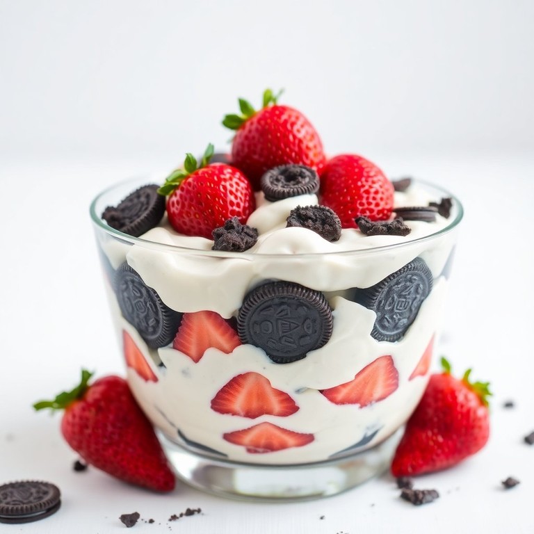 Uma sobremesa cremosa que combina morangos frescos com o crocante das bolachas Oreo, perfeita para qualquer ocasião.