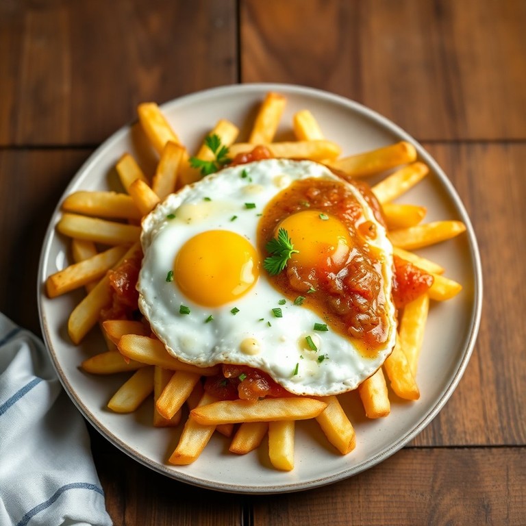 Papas Fritas con Huevo y Salsa de Cebolla Irresistible