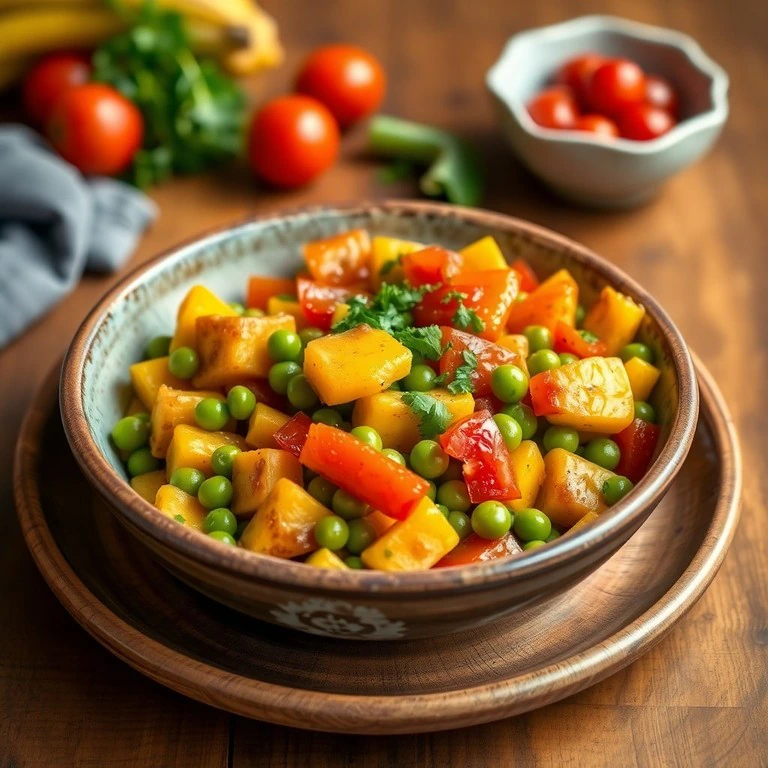 Plátano Verde Salteado con Chícharos y Tomate