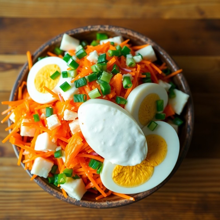 Esta ensalada de zanahorias al huevo con cebolla de verdeo es una guarnición nutritiva y deliciosa, perfecta para acompañar cualquier plato. La combinación de zanahorias frescas, huevos duros y cebolla de verdeo le da un toque crujiente y sabroso, ideal para cualquier ocasión.