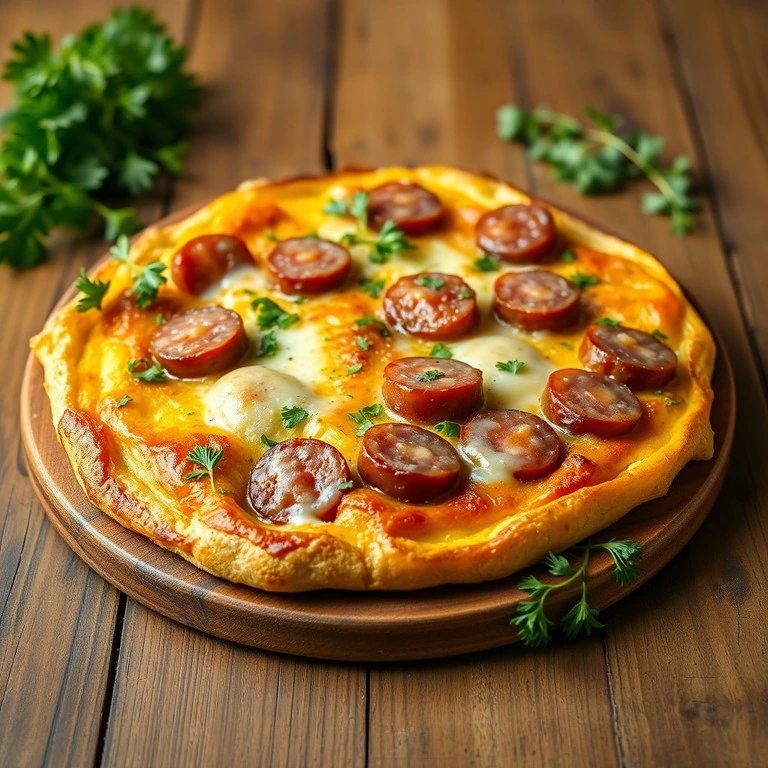 Una sabrosa tortilla que combina la suavidad de la papa, la intensidad de la salchicha y el sabor del queso fundido.