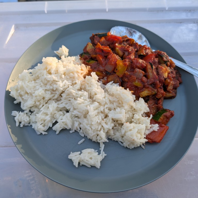 Bunte Gemüse-Reis-Pfanne mit Tomatensauce