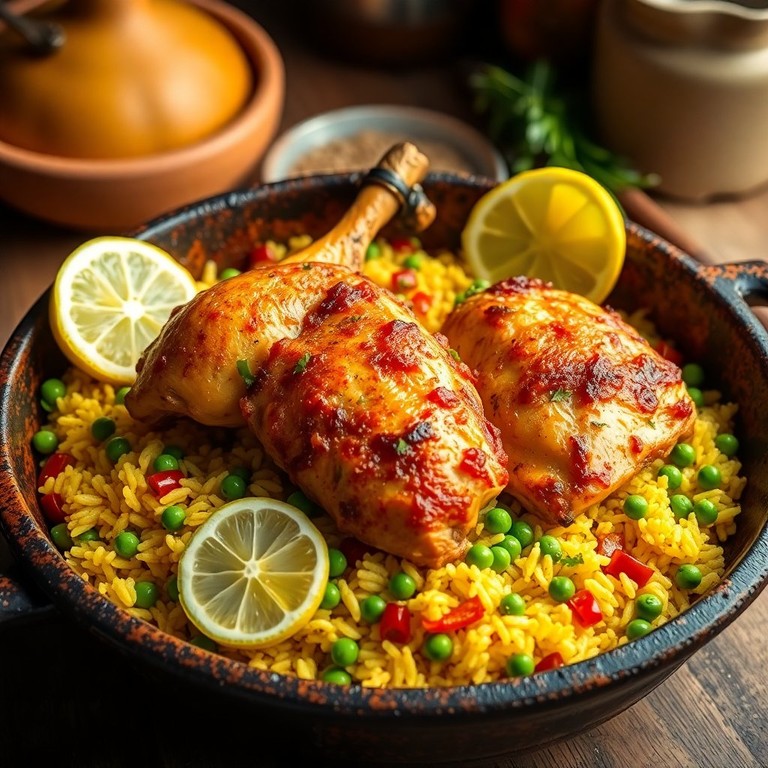 Arroz con Azafrán y Pollo al Horno