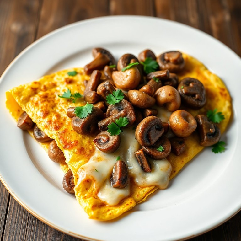 Esta omelette es una deliciosa combinación de champiñones salteados y queso derretido, perfecta para un desayuno o brunch. Su textura suave y su sabor umami la hacen irresistible.