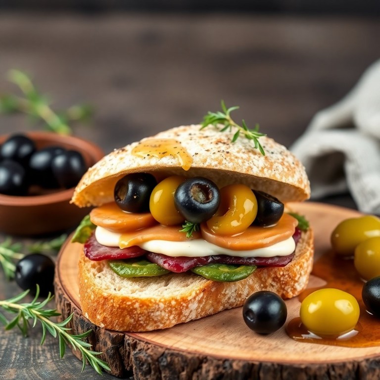 Este sándwich gourmet combina la suavidad del foie de pato con el sabor intenso de las aceitunas, creando una experiencia culinaria elegante y deliciosa. Perfecto para una ocasión especial o un almuerzo refinado.