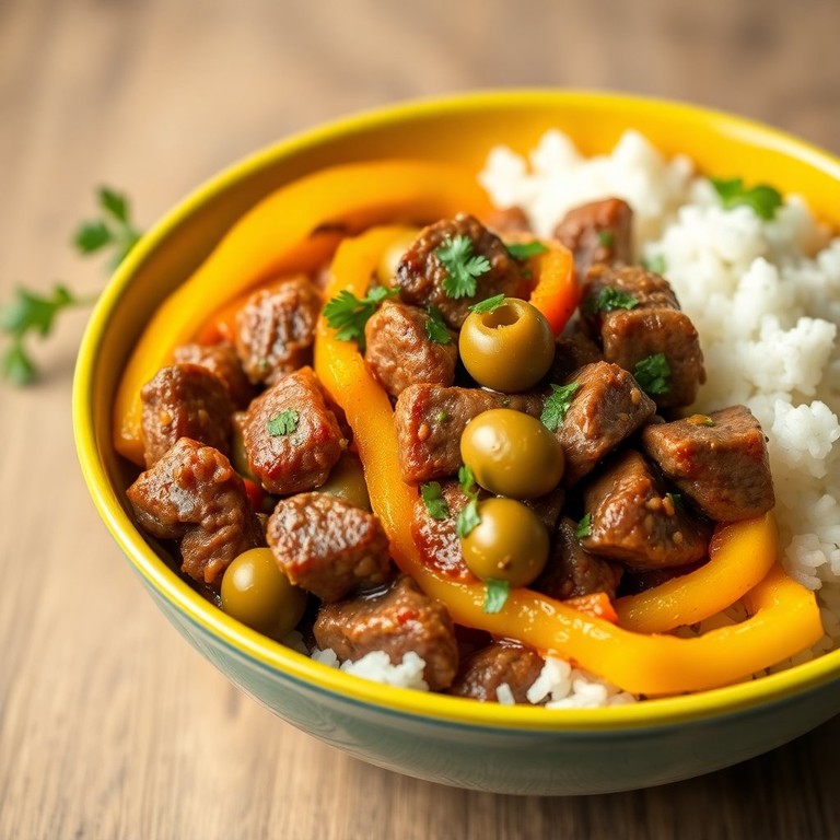 Salteado de Lomo de Res con Pimientos y Aceitunas