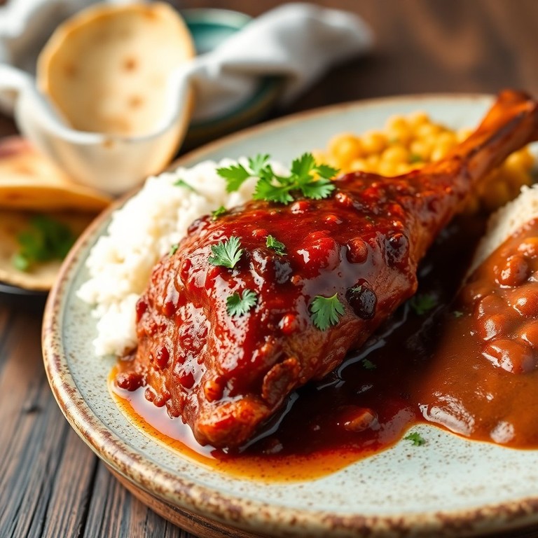 Una deliciosa pierna de cerdo adobada, marinada con una mezcla de chiles secos que realzan su sabor, perfecta para compartir en una comida familiar.