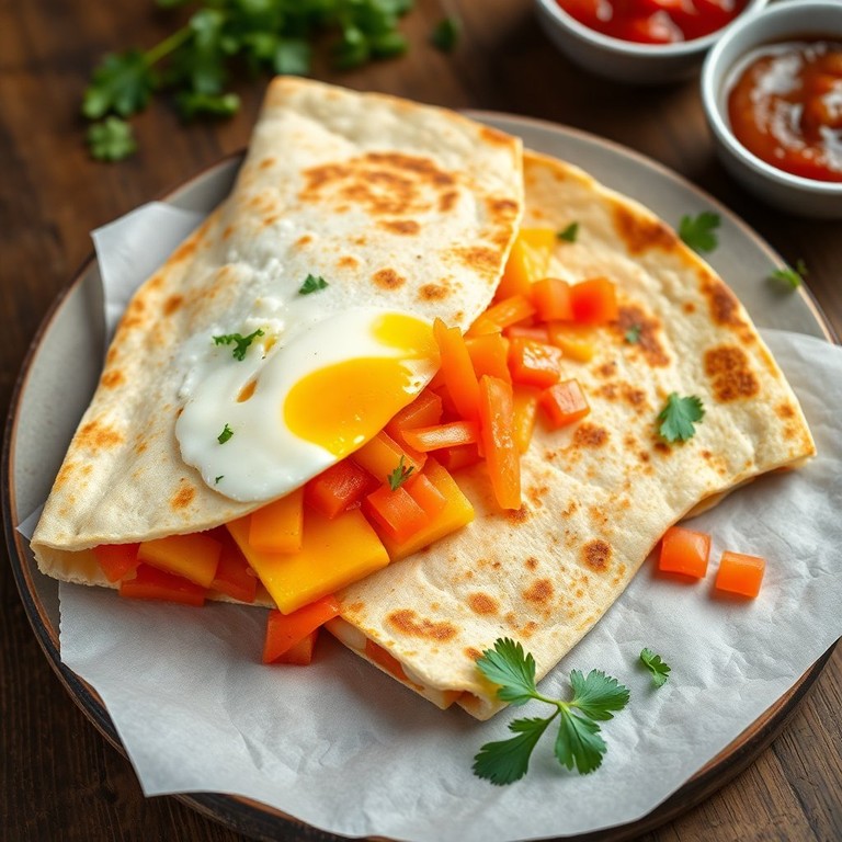 Esta quesadilla de huevo y verduras es una opción deliciosa y nutritiva, perfecta para cualquier momento del día. Con su combinación de queso derretido, huevos esponjosos y verduras frescas, es un platillo que encantará a todos.
