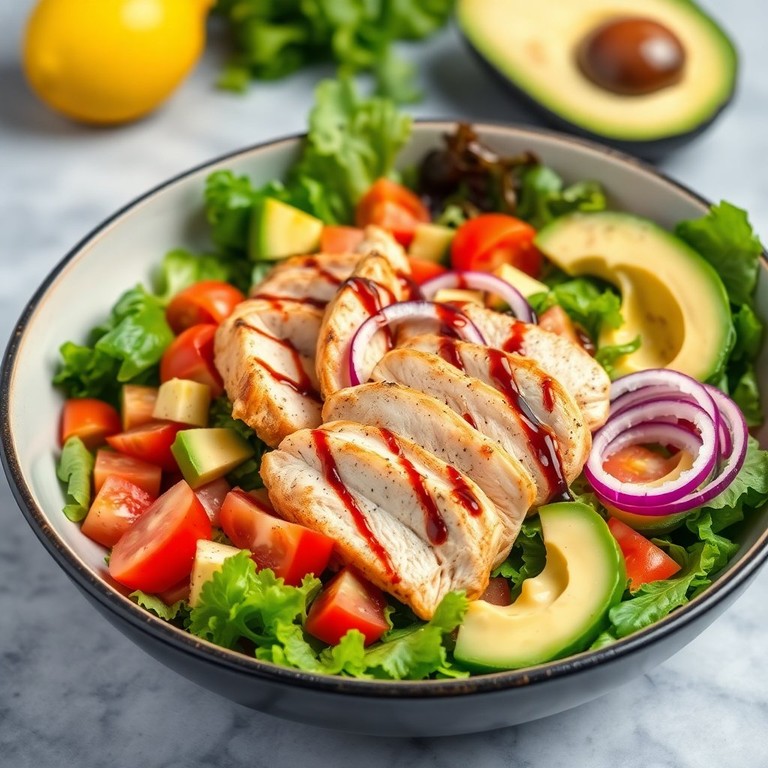 Ensalada Fresca de Pollo Asado con Tomates y Cebolla Morada