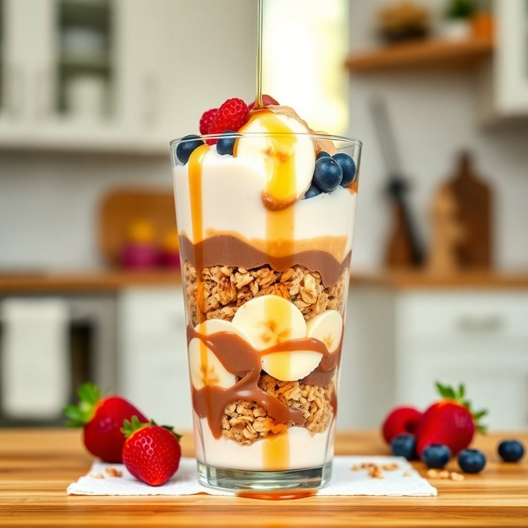 This Nutella & Peanut Butter Yogurt Parfait is a quick and nutritious breakfast option that combines creamy yogurt with the rich flavors of Nutella and peanut butter, layered with crunchy granola and fresh fruits. Perfect for busy mornings!