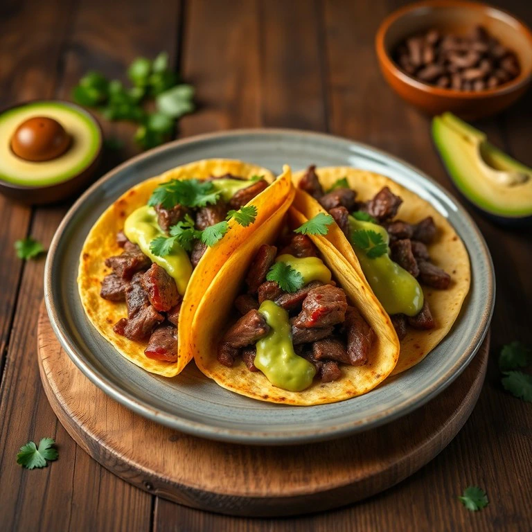 Disfruta de unos deliciosos tacos de solomillo, donde la carne tierna se combina con una salsa cremosa de aguacate, perfecta para cualquier ocasión.