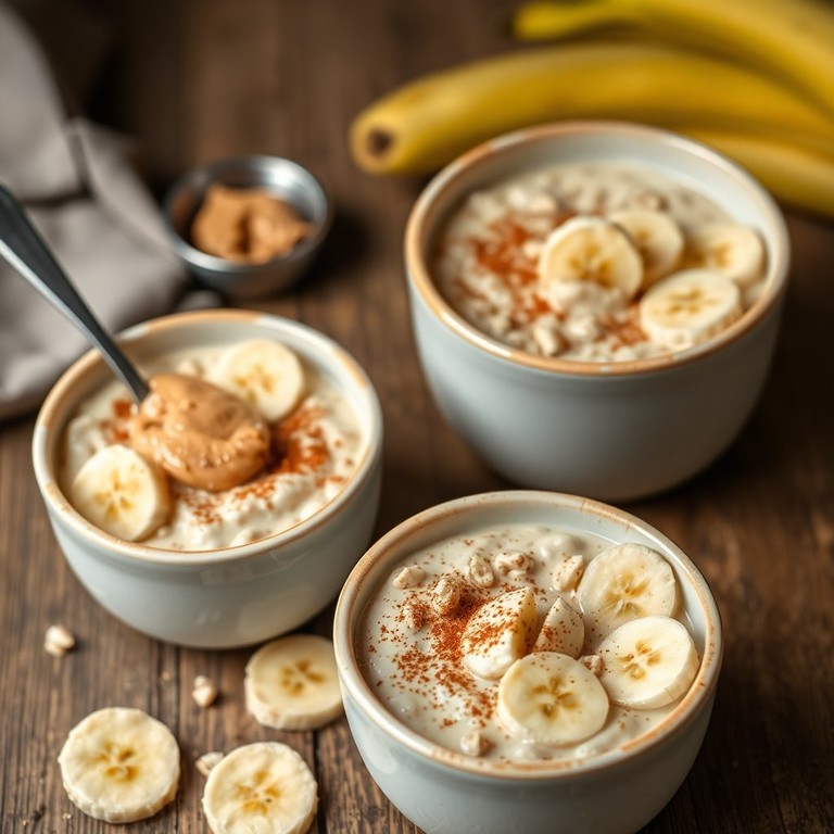 Un postre saludable y cremoso que combina avena, plátano y mantequilla de cacahuete, ideal para cualquier momento del día.