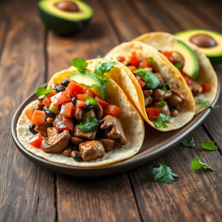 Estos tacos veganos son una explosión de sabor y son muy fáciles de preparar. La combinación de champiñones salteados y frijoles negros crea un relleno delicioso y nutritivo, perfecto para cualquier comida. Puedes personalizarlos con tus ingredientes favoritos y disfrutar de una comida saludable y satisfactoria.