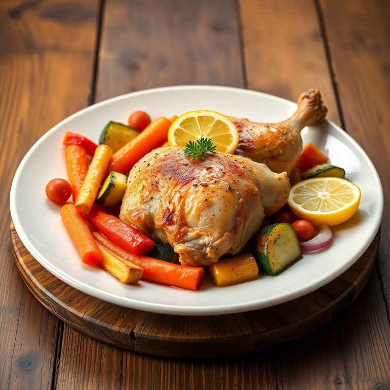 Contramuslos de Pollo Asados con Verduras de Temporada