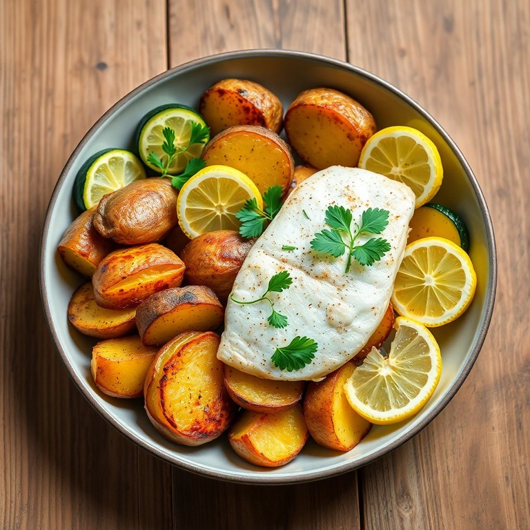 Papas Rústicas al Horno con Pescado y Calabacín