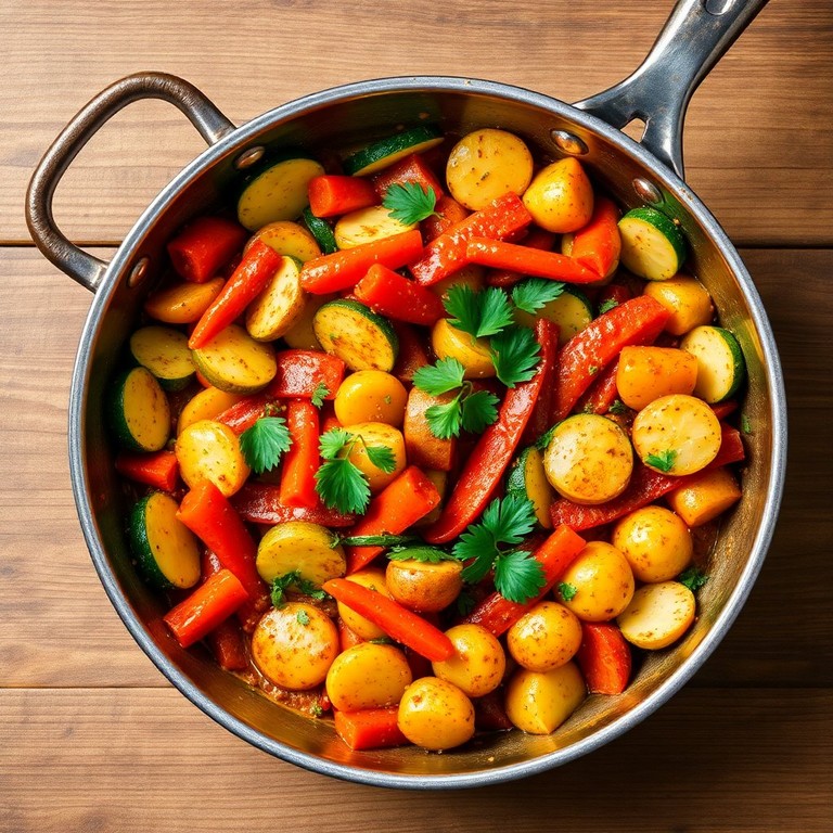 Bunte Gemüsepfanne mit Zucchini und Karotten