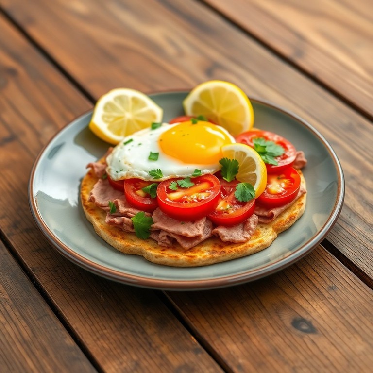 Tostadas de Mortadela y Tomate con Huevo y Limón