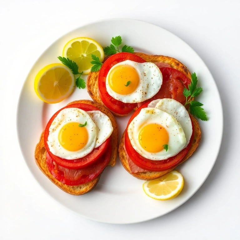 Tostadas de Pan con Tomate, Mortadela y Huevo