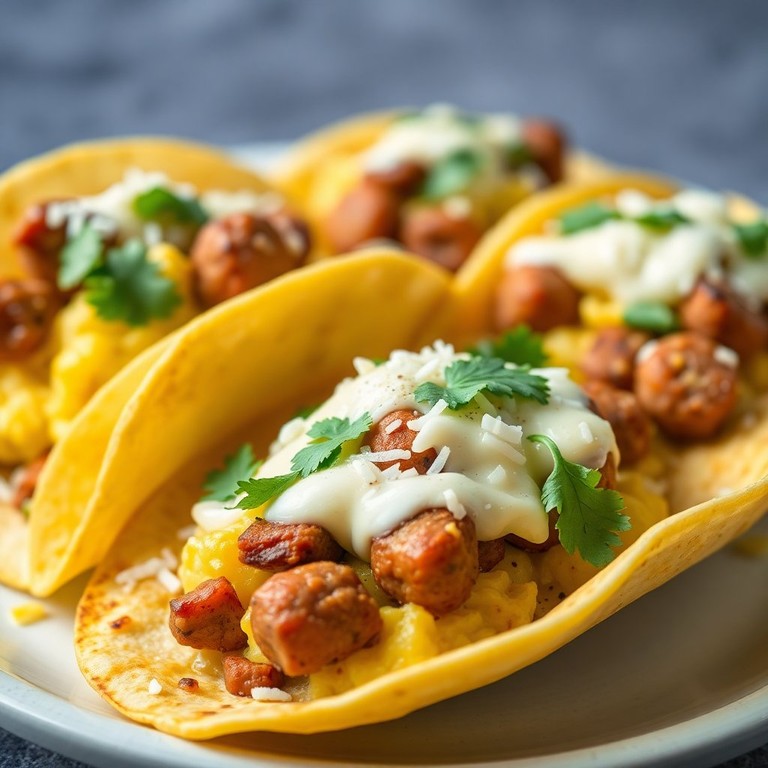 Estos tacos son una deliciosa opción para el desayuno, combinando el sabor de las salchichas con la suavidad de los huevos revueltos, todo envuelto en tortillas de maíz.