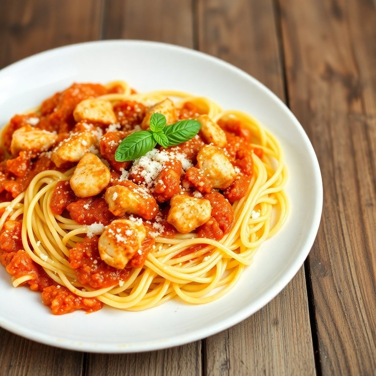 Espaguetis con Pollo y Salsa de Tomate Frito al Estilo Italiano