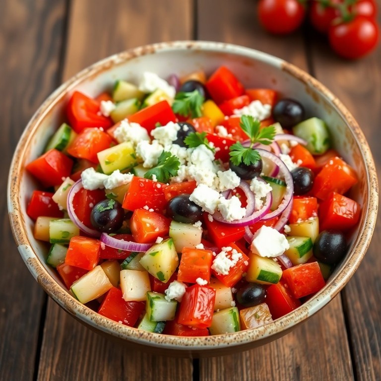 This Zesty Greek Salad Extravaganza is a refreshing and colorful dish that combines the crunch of fresh vegetables with the creaminess of feta cheese and the briny flavor of olives, all brought together by a tangy olive oil dressing. Perfect as a side dish or a light meal!