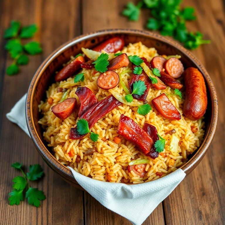 Arroz de Linguiça com Bacon e Repolho