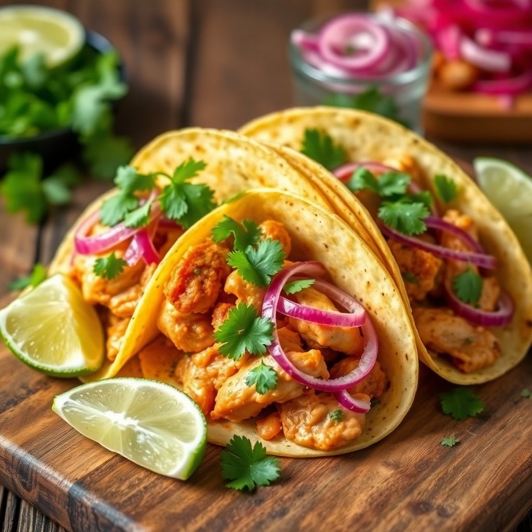 Estos tacos de pollo son una opción deliciosa y divertida para cualquier cena. El pollo jugoso se combina perfectamente con la cebolla morada encurtida, creando un equilibrio de sabores que encantará a todos. ¡Perfectos para compartir!