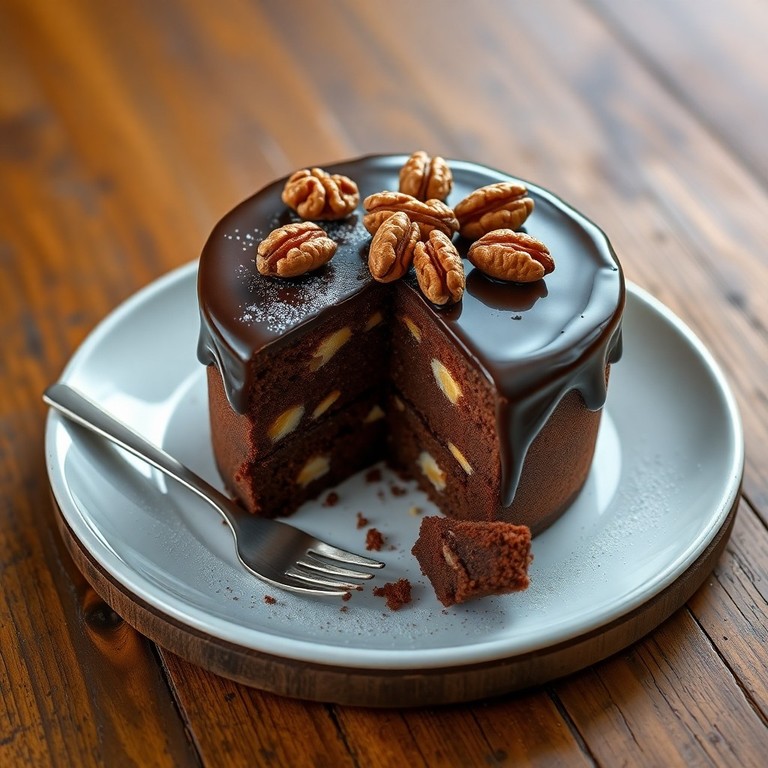 Un pastel de brigadeiro en capas, emperejilado con nueces y preparado sin gluten y sin azúcares; ideal para aquellos que buscan un dulce saludable y delicioso.