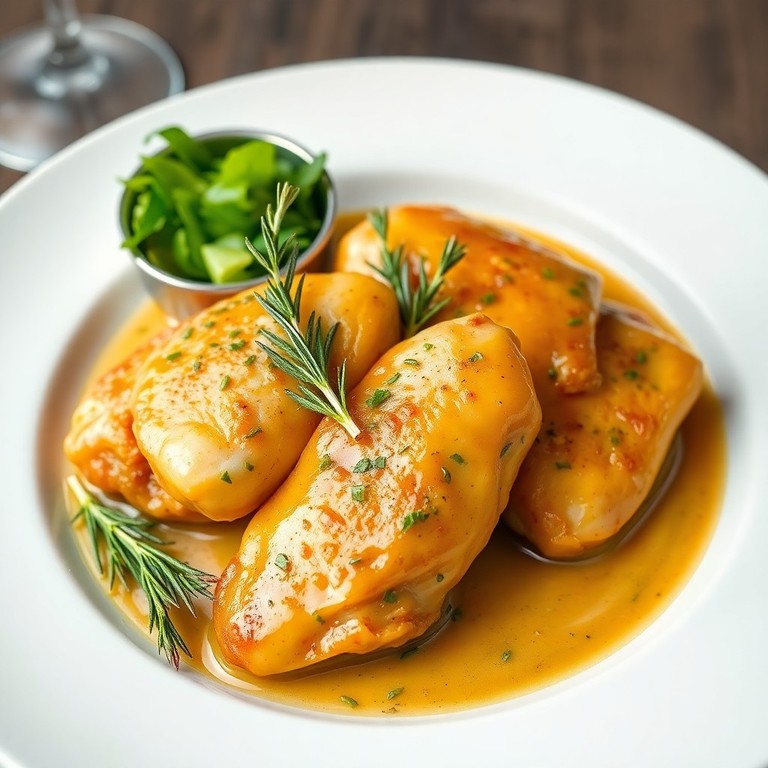Un delicioso pollo marinado en mostaza y hierbas frescas, asado al horno; sin azúcares y apto para celíacos y diabéticos.