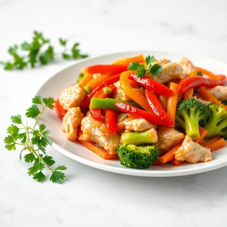 Tierno pollo salteado con una mezcla colorida de verduras frescas, realzado por un toque de jugo de limón. Una opción rápida y saludable apta para celiacos y diabéticos.