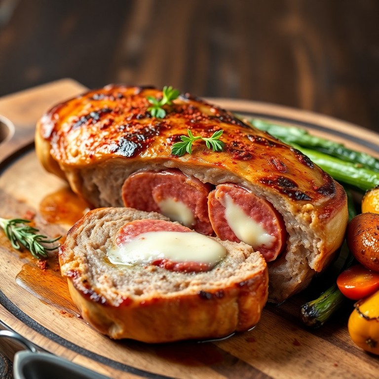 Un delicioso corte de carne vacío relleno con calabresa, horneado a la perfección. Este plato es libre de azúcar y gluten, ideal para celiacos y diabéticos, cocinado lentamente para lograr una textura jugosa en aproximadamente 1 hora.