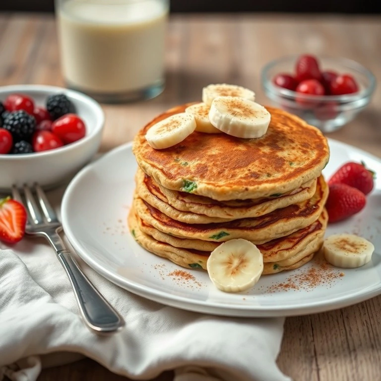 Estos panqueques usan avena certificada sin gluten y calabacín, ideales para empezar el día. Endulzados naturalmente con plátano, son una opción saludable y deliciosa.