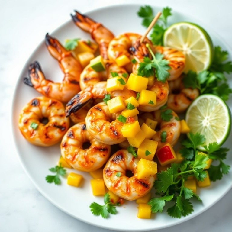 Brochetas de Camarón a la Parrilla con Salsa de Mango Picante