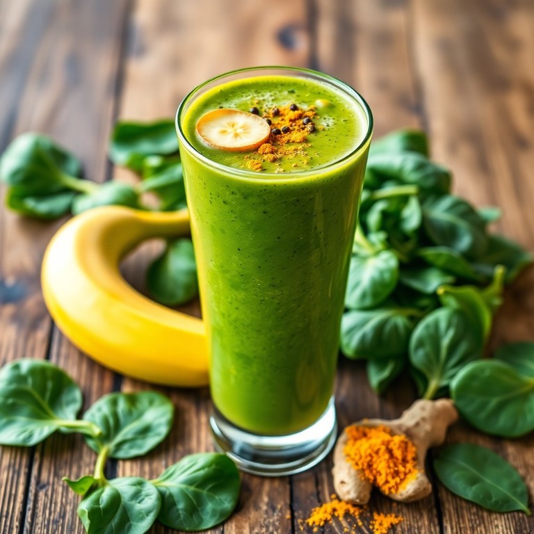 Un revitalizante batido lleno de nutrientes que combina el picante jengibre fresco, la cúrcuma dorada y un toque de pimienta negra, ideal para comenzar el día con energía.