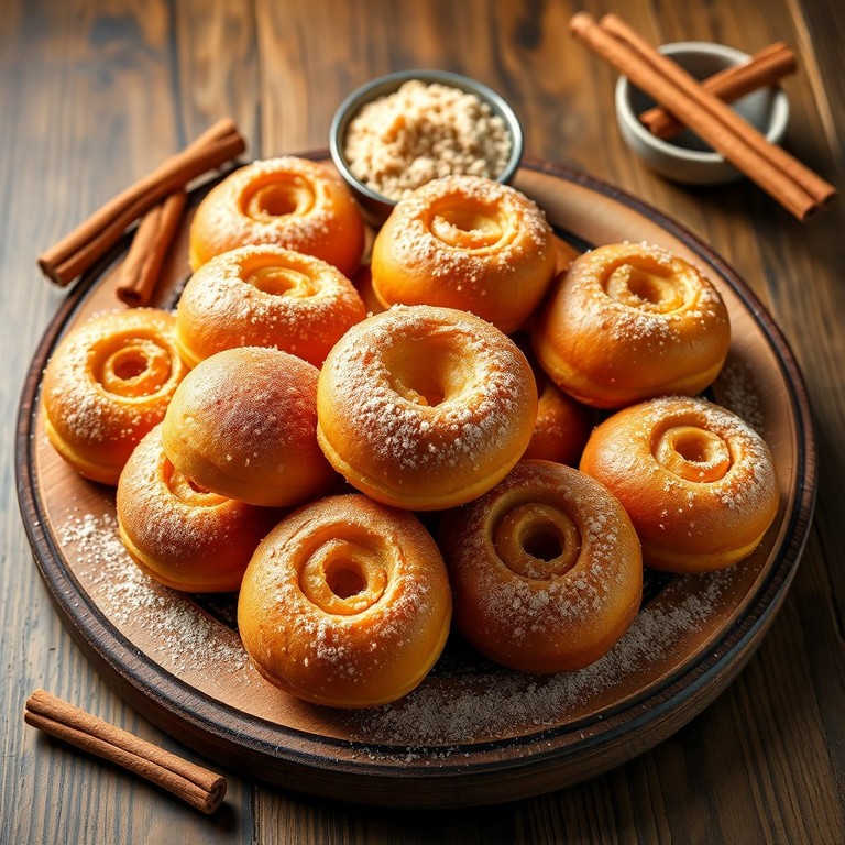 Delicados buñuelos crujientes por fuera y suaves por dentro, espolvoreados con azúcar y canela. Ideales para un postre o merienda especial.