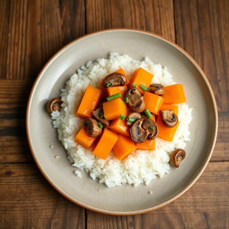 Salteado Oriental de Pollo, Calabaza y Champiñones con Arroz Jazmín